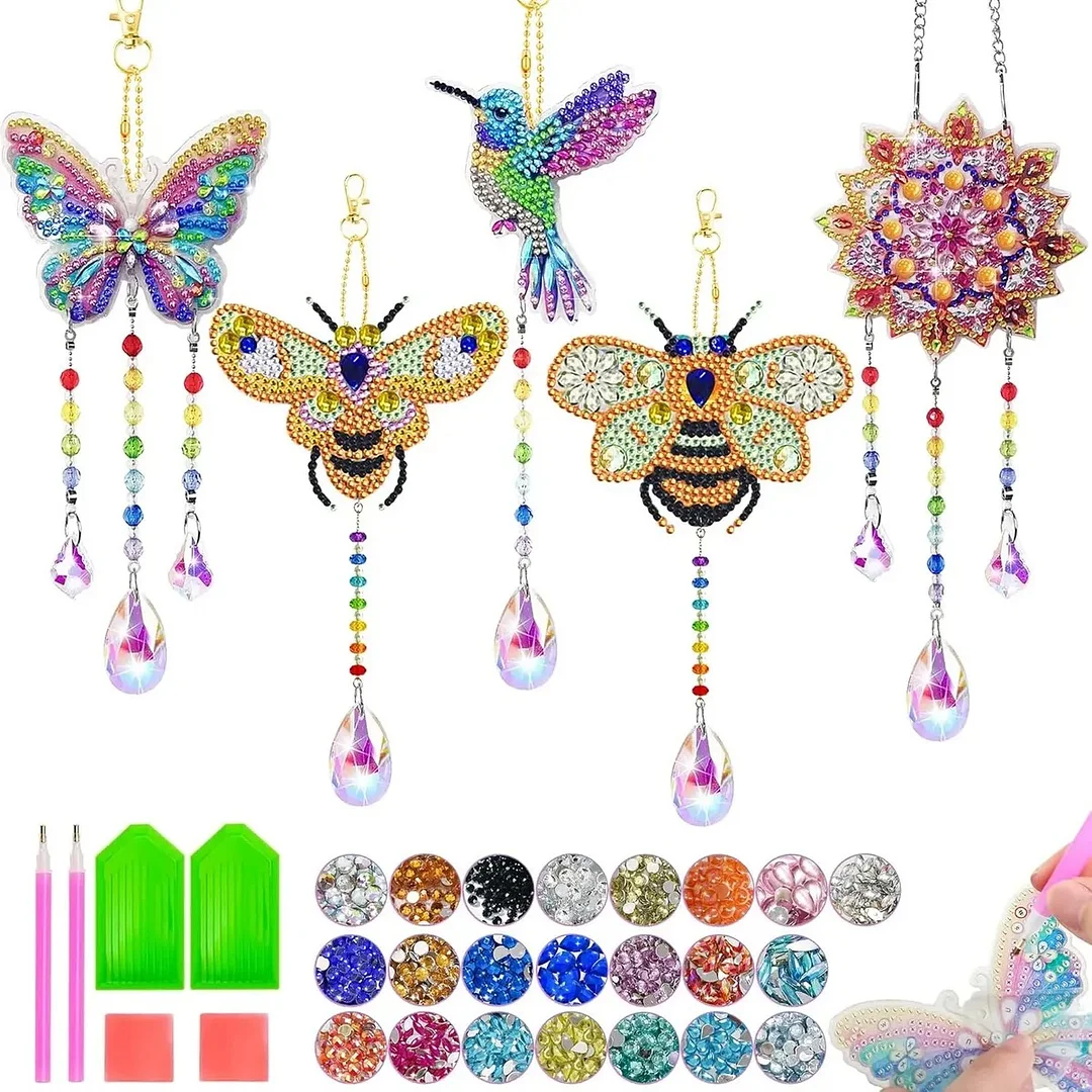 5Pcs DIY Diamond Painting Wind Chimes Crystal Window Suncatcher Craft Set Birthday Gifts Home Garden Decor