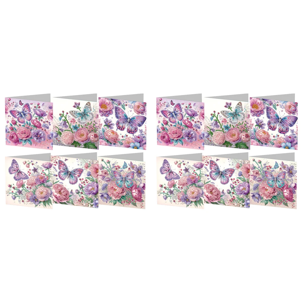 (US Local)6Pcs Butterfly Rose DIY Diamond Painting Greeting Card 5D Drill Painting Card