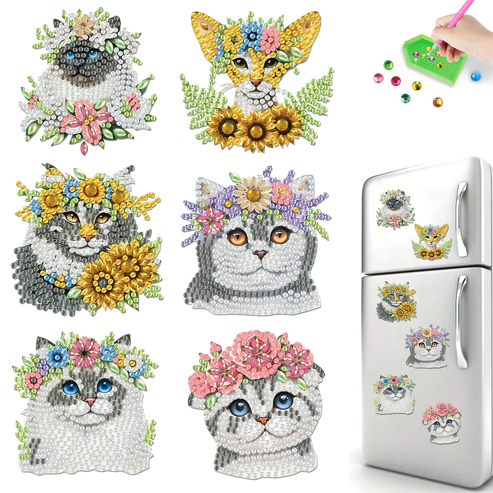 diamond art magnets decalsSelling point content6 Pieces/set Cat DIY Diamond Painting Magnets Refrigerator Diamond Art Magnets Decals for Fridge Whiteboards Car Mailbox Decor