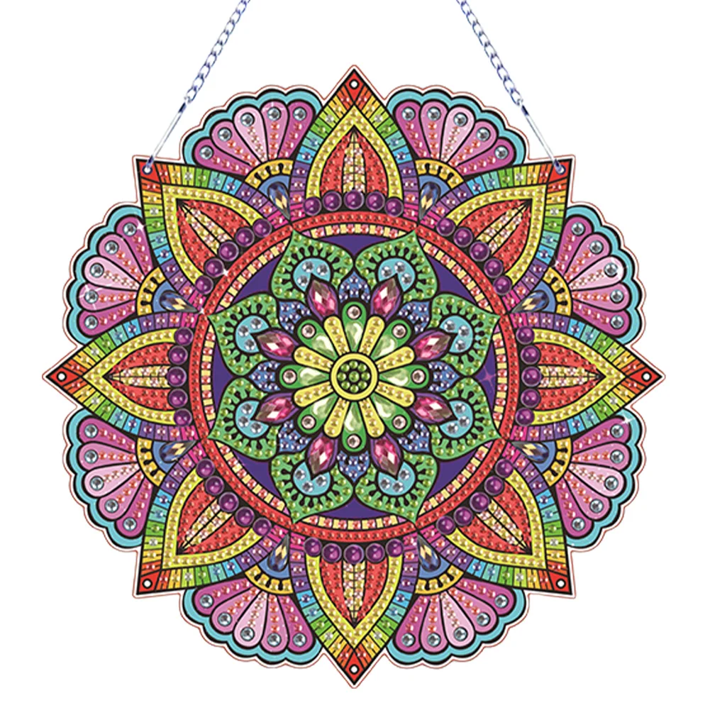 Acrylic Retro Pattern 5D DIY Diamond Painting Dots Pendant Rhinestone Diamond Art Window Pendants for Garden Window Decor