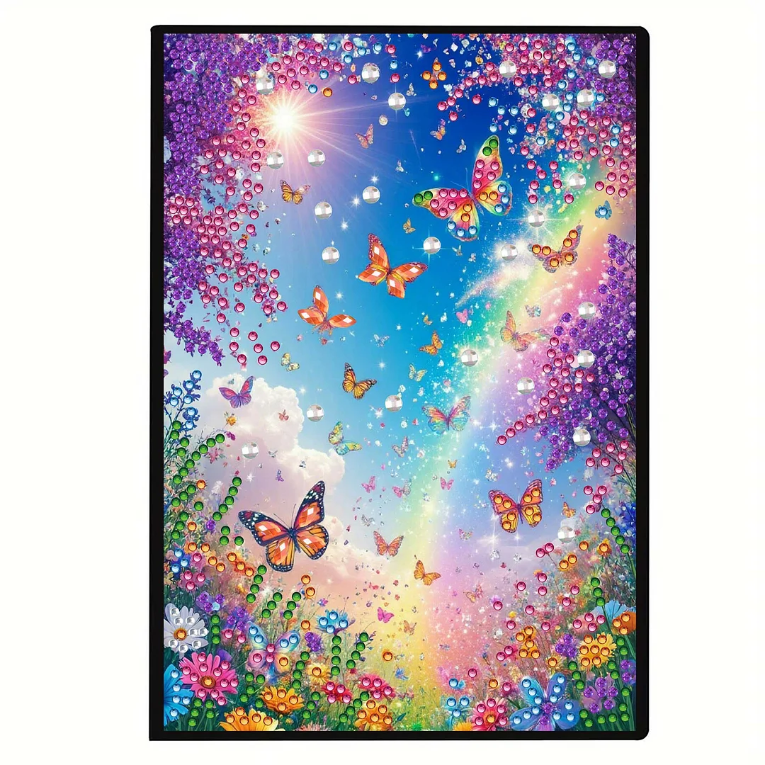 Butterfly 5D DIY Diamond Art Painting Notebook Kit 50 Pages A5 Rhinestone Art Painting Notebook Kit for Adults Beginners Holiday Birthday Gift