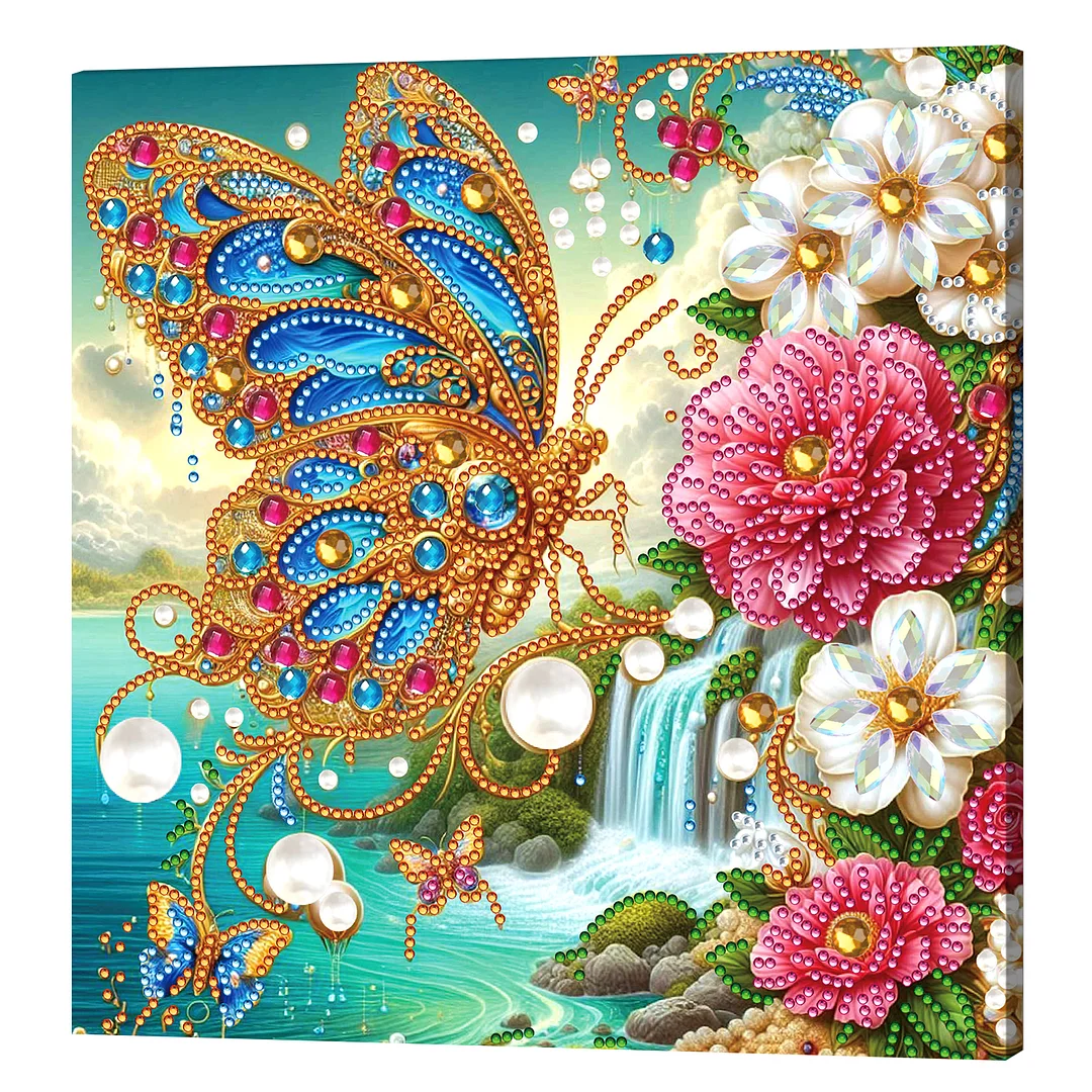 (Pre-Framed)Butterfly Flower-Special Shape Diamond Painting Kit(25x25cm)