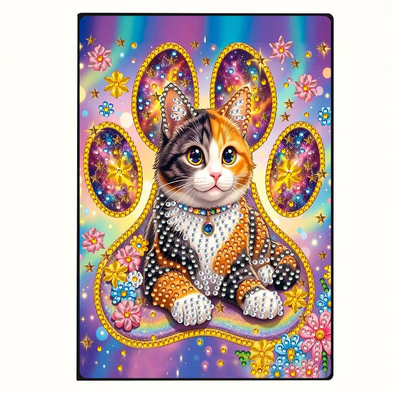 Cat 5D DIY Diamond Art Painting Notebook Kit 50 Pages A5 Rhinestone Art Painting Notebook Kit for Adults Beginners Holiday Birthday Gift