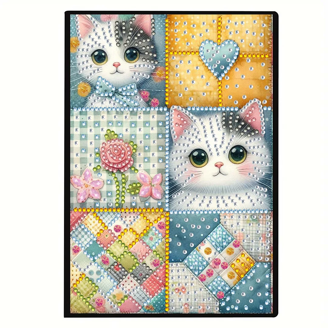 Cat 5D DIY Diamond Art Painting Notebook Kit 50 Pages A5 Rhinestone Art Painting Notebook Kit for Adults Beginners Holiday Birthday Gift