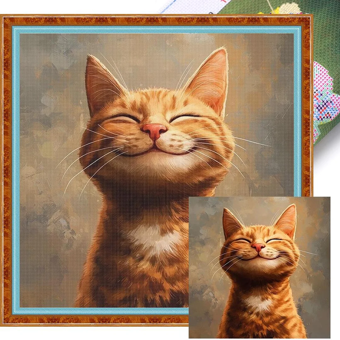 Cat-18CT Stamped Cross Stitch Kit(20x20cm)