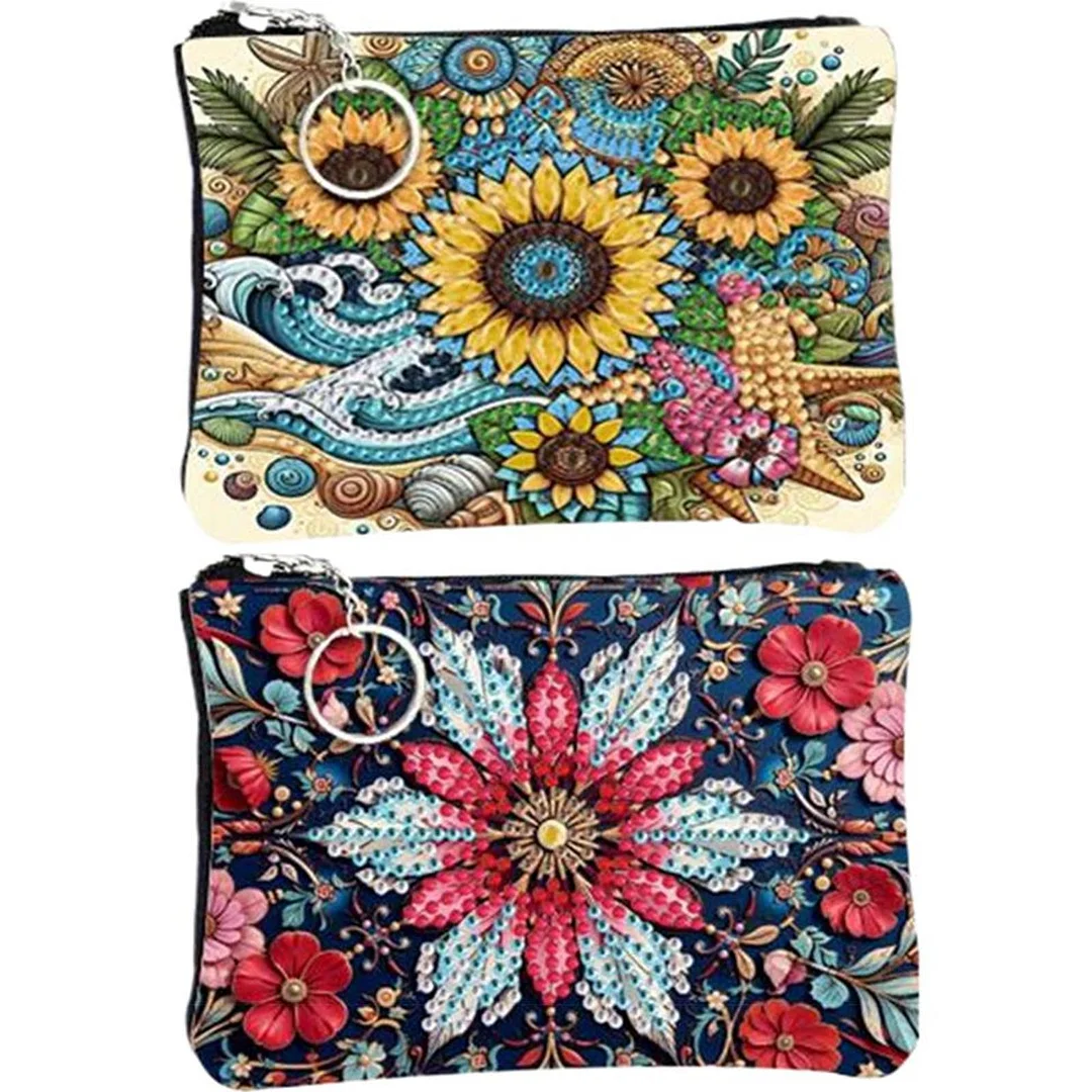 2pcs DIY Diamond Art Diamond Dot Card Pack Diamond Painting Coin Pouch (Sunflower)