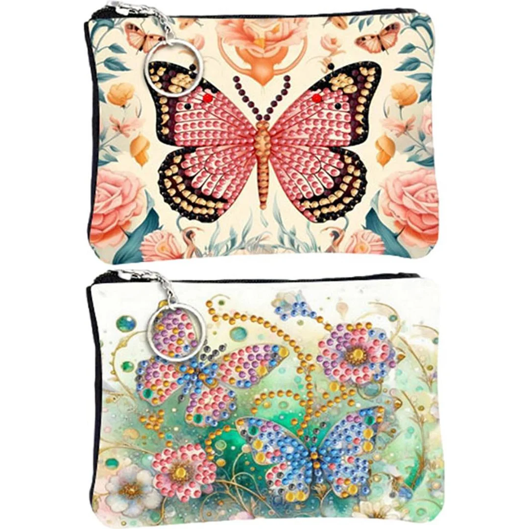 2pcs DIY Diamond Art Diamond Dot Card Pack Diamond Painting Pouch (Flower Butterfly)