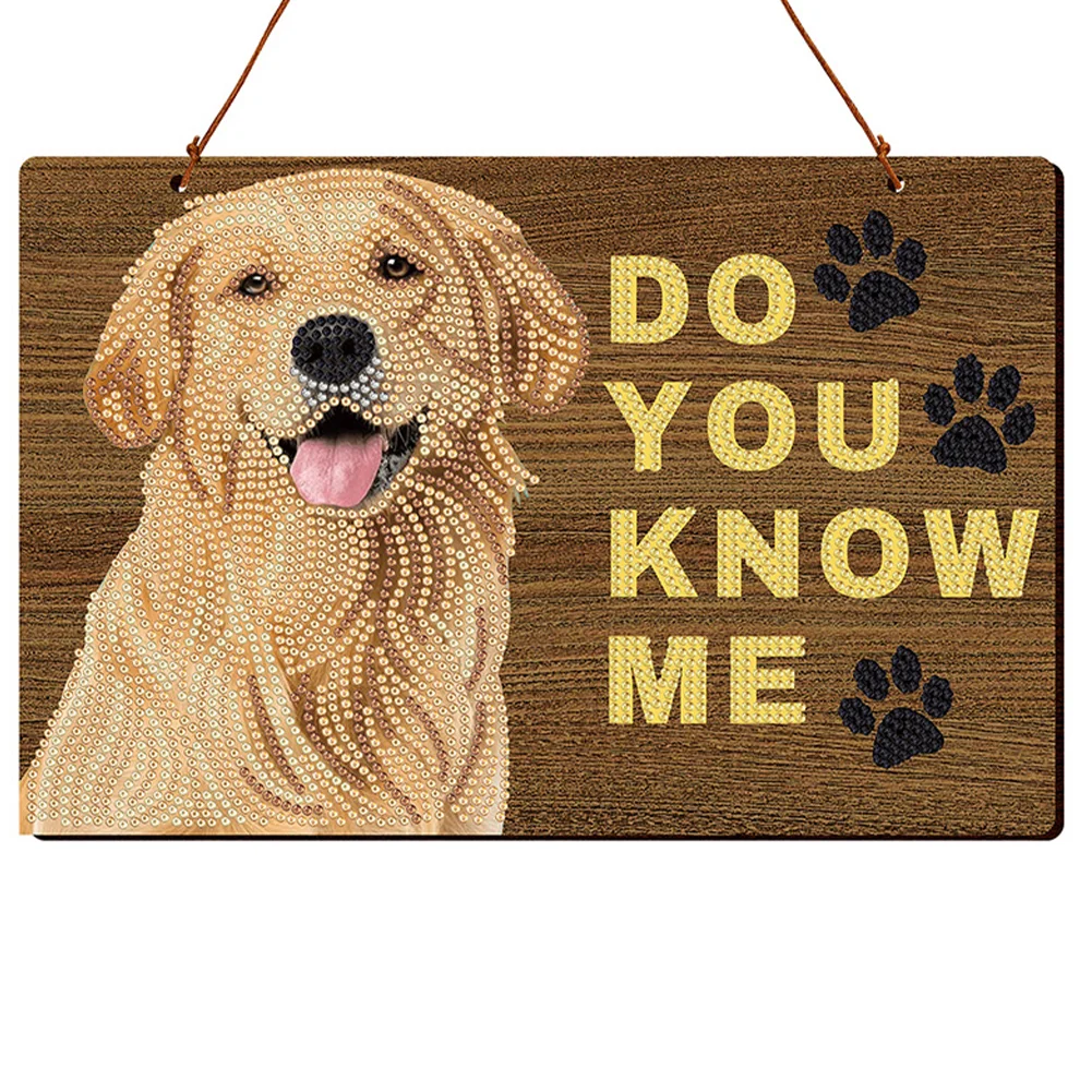 DIY Diamond Painting Dog Wooden Wall Plaque Sign Wood Plate Hanging Pendant Decoration House Door Decor