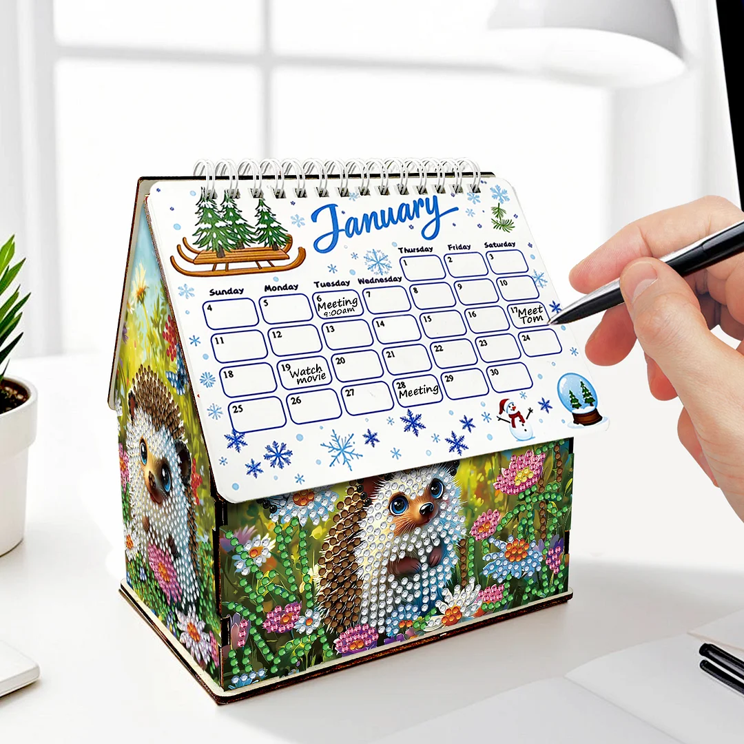 DIY Diamond Painting Special Shape Desktop Cabin Calendar Organizer Box Kit(Hedgehog)
