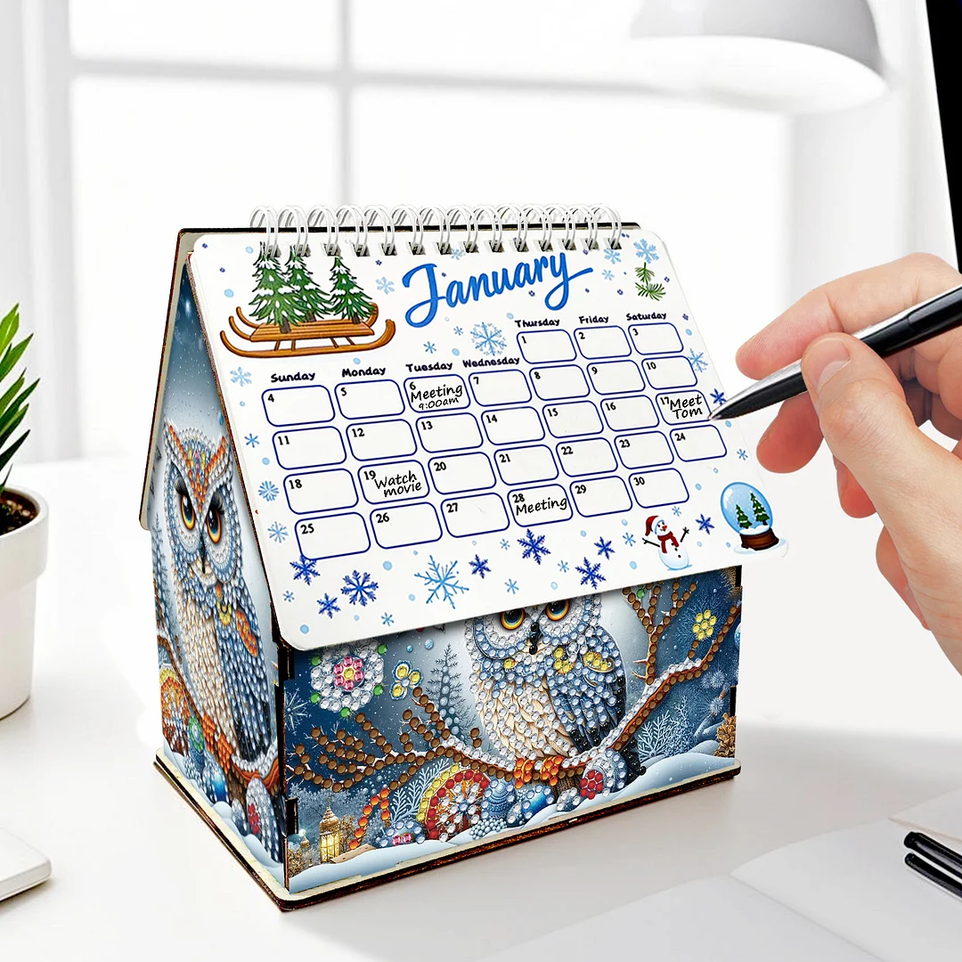 DIY Diamond Painting Special Shape Desktop Cabin Calendar Organizer Box Kit(Owl)