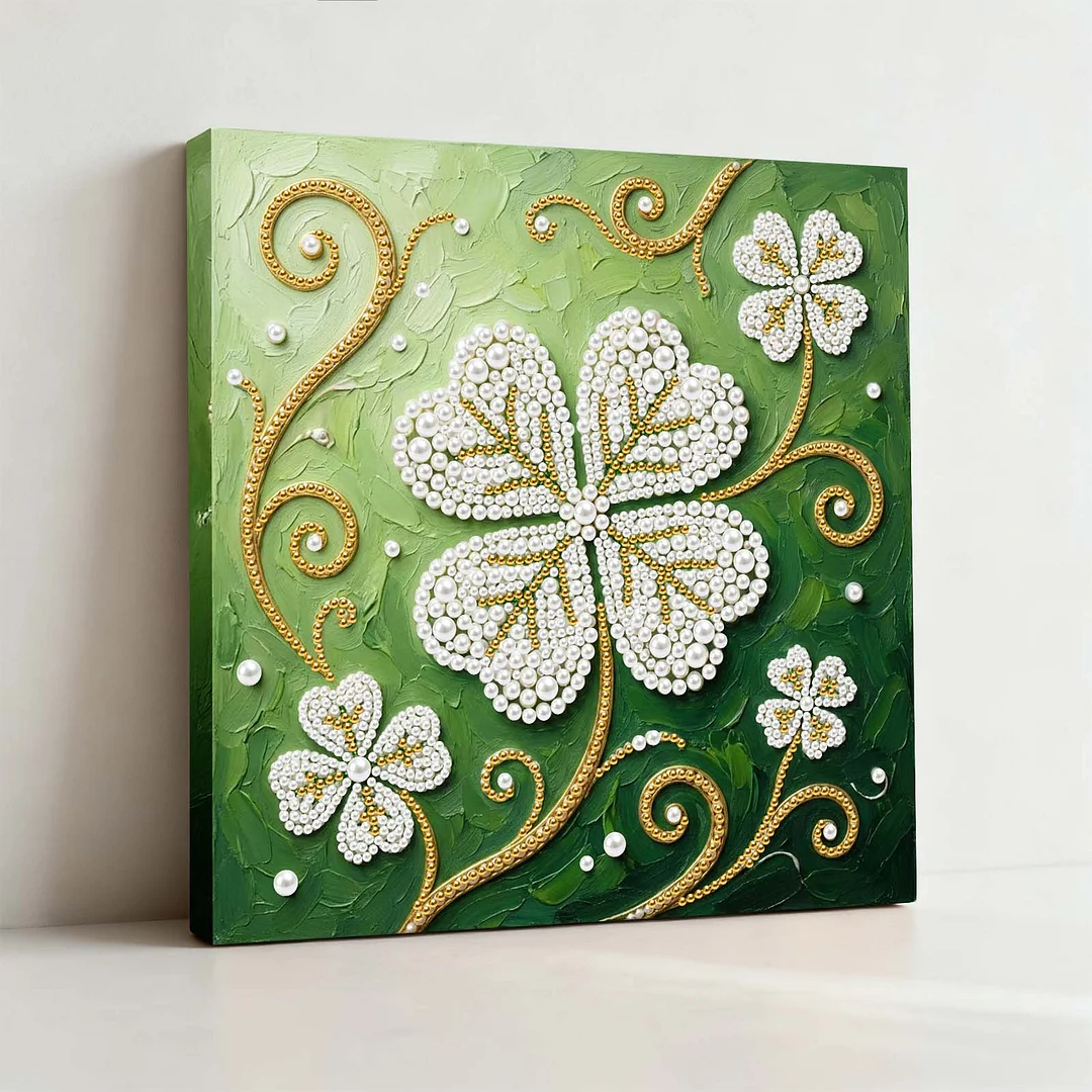 (25x25cm)DIY Pearl Painting Lucky Leaf Framed Handmade Pearl Painting Art Craft Kit Living Home Decor