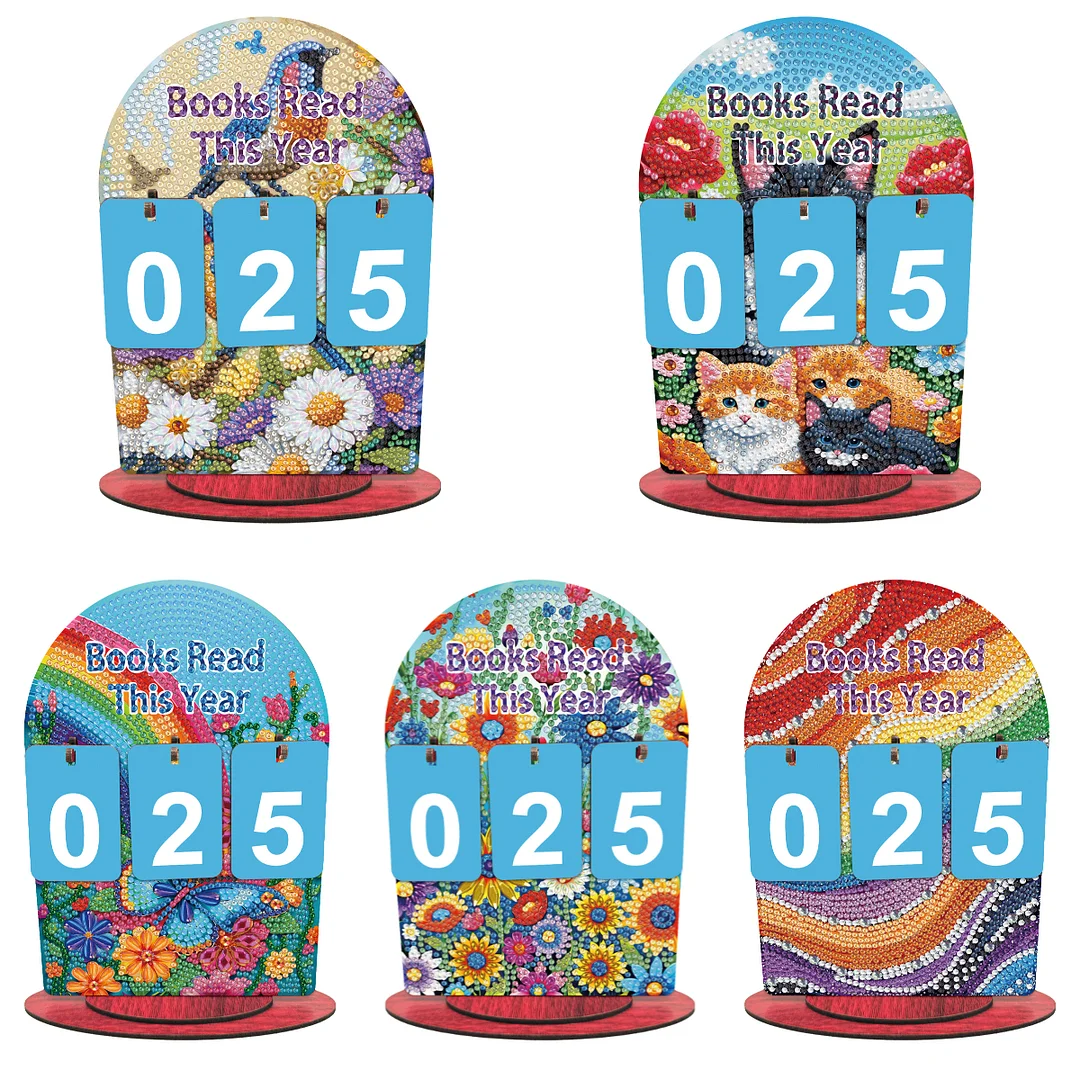 DIY Wooden Annual Reading Count Ornament Year's Reading Tracker Desk Kit Track up to 999 Books, Comes with a Base