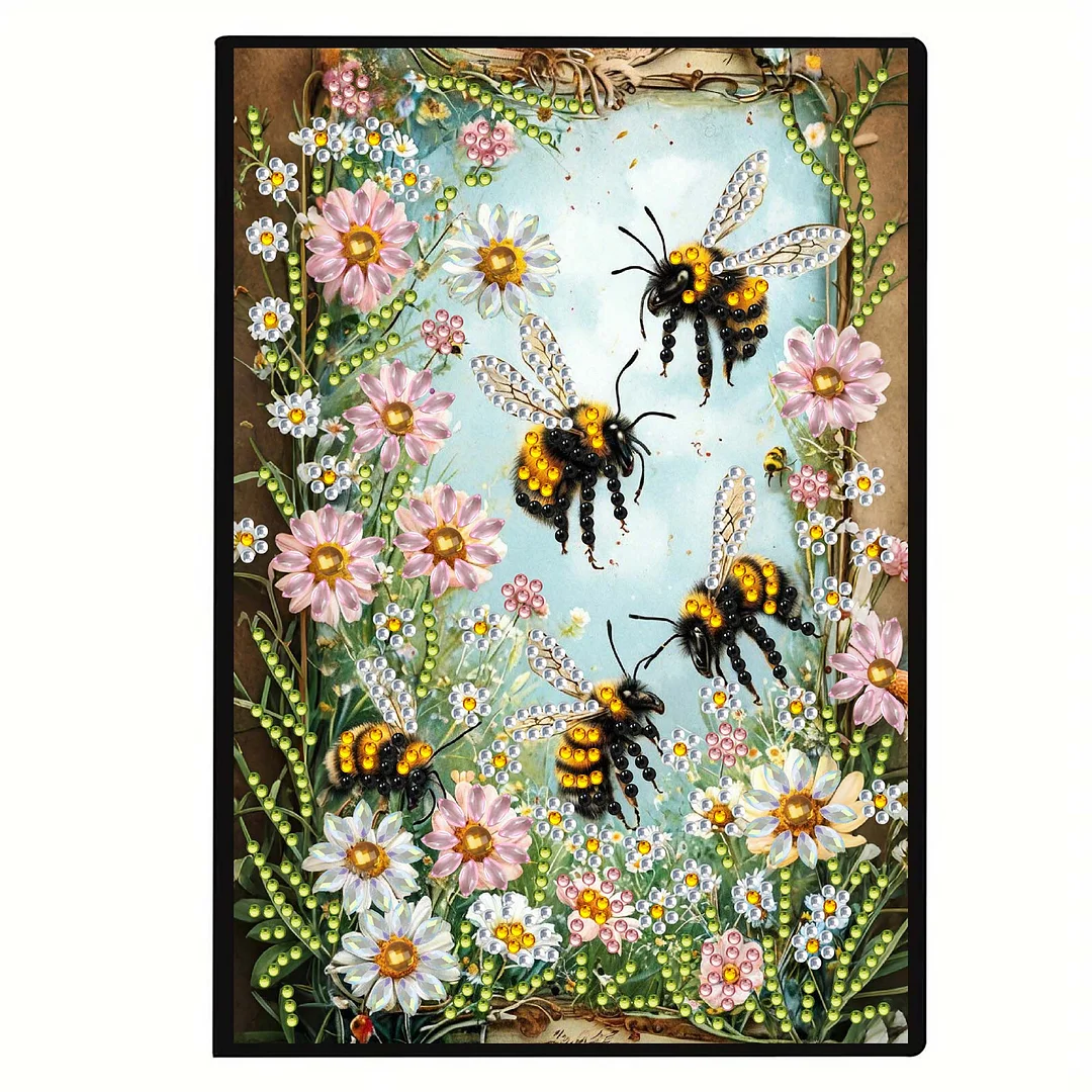 Flower Bee 5D DIY Diamond Art Painting Notebook Kit 50 Pages A5 Rhinestone Art Painting Notebook Kit for Adults Beginners Holiday Birthday Gift