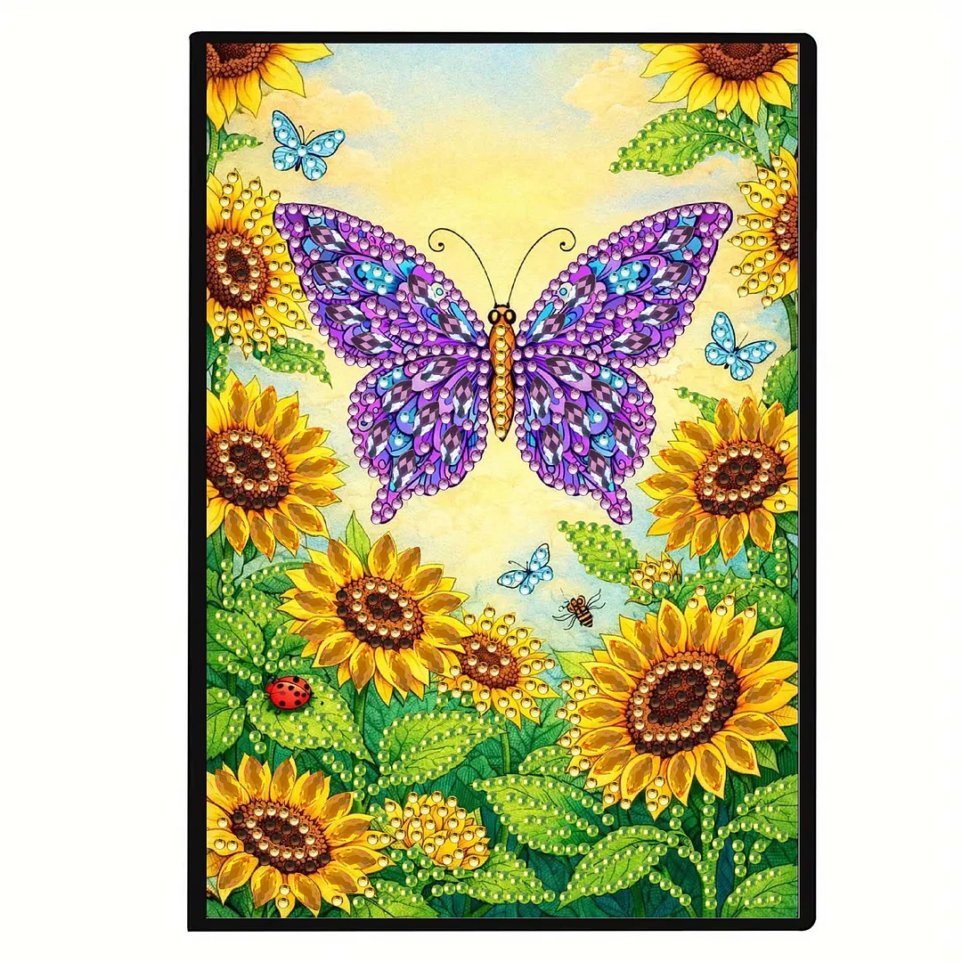 Flower Butterfly 5D DIY Diamond Art Painting Notebook Kit 50 Pages A5 Rhinestone Art Painting Notebook Kit for Adults Beginners Holiday Birthday Gift