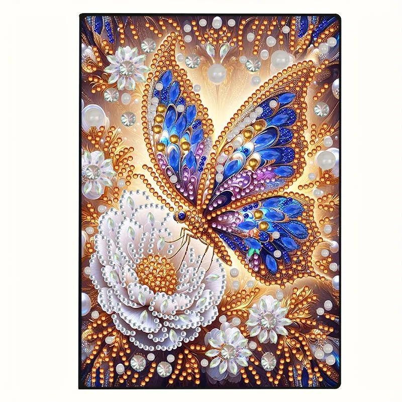Flower Butterfly 5D DIY Diamond Art Painting Notebook Kit 50 Pages A5 Rhinestone Art Painting Notebook Kit for Adults Beginners Holiday Birthday Gift