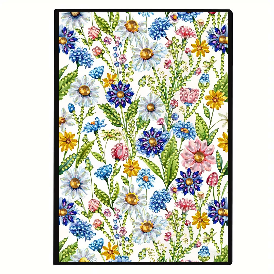 Flowers 5D DIY Diamond Art Painting Notebook Kit 50 Pages A5 Rhinestone Art Painting Notebook Kit for Adults Beginners Holiday Birthday Gift