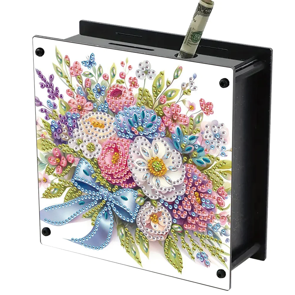 (US Local)Flowers DIY Money Storage Box Diamond Painting Art Piggy Bank for Beginners