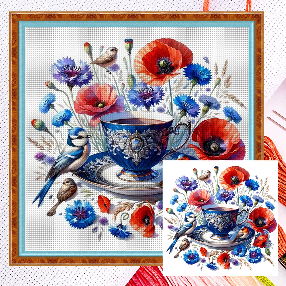 Bird Teacup-14CT Counted Cross Stitch Kit(40x40cm)