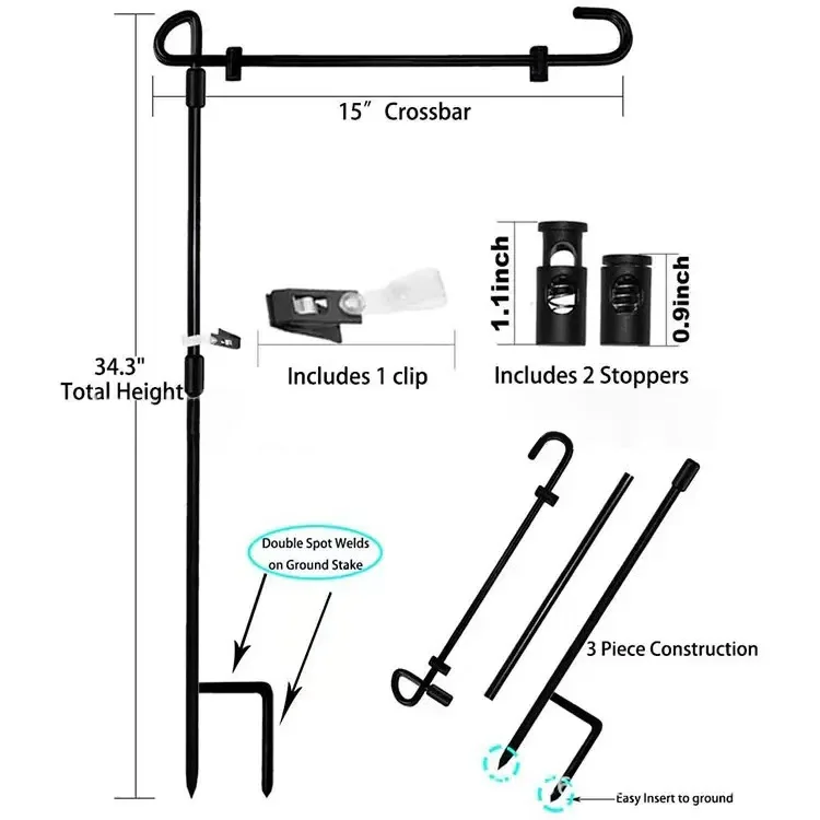 【EASY ASSEMBLE AND INSTALL】- It's very easy to assemble. Our garden flag holder is equipped with screwing-in joints, Which ensure strong connection that make 3 pieces into one piece. 10cm wider pointed feet to provide the maximum stability on the ground.