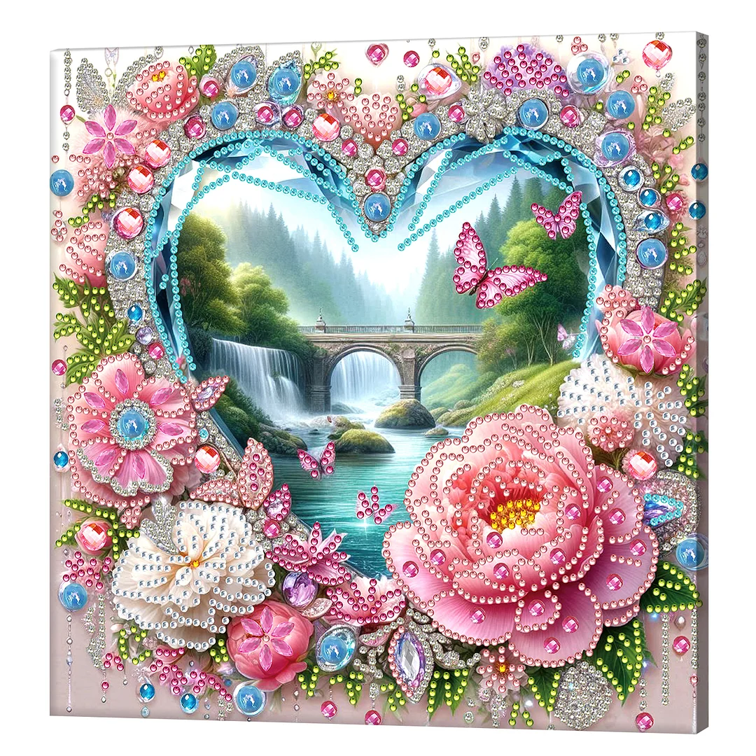 (Pre-Framed)Heart Landscape-Special Shape Diamond Painting Kit(25x25cm)