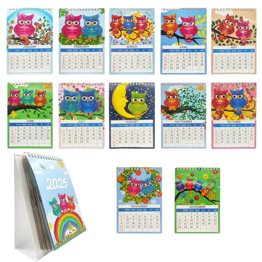 Paper Special Shaped Colorful Pattern Diamond Painting Calendar Ornament DIY Diamond Painting Planner Calendar for Desktop Decor