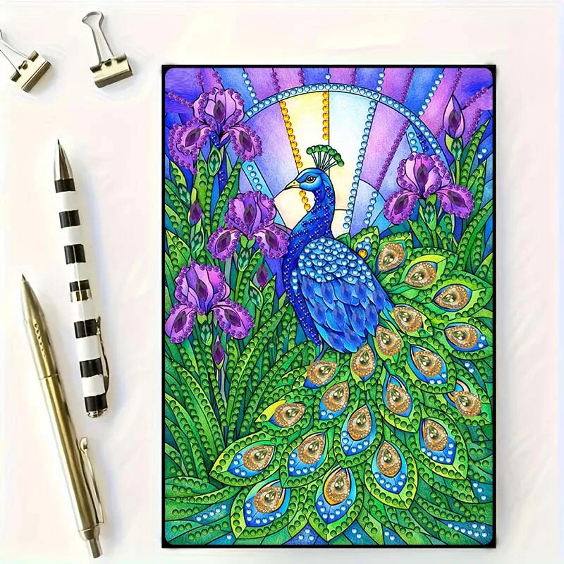 Peacock 5D DIY Diamond Art Painting Notebook Kit 50 Pages A5 Rhinestone Art Painting Notebook Kit for Adults Beginners Holiday Birthday Gift