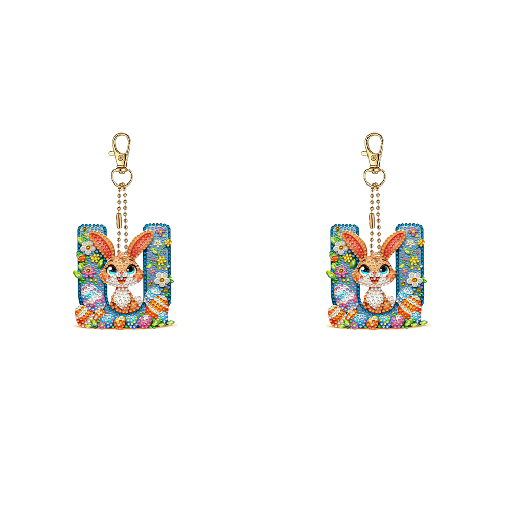 (US Local)PET Double Sided Special Shaped Easter Alphabet DIY Diamond Painting Keychain