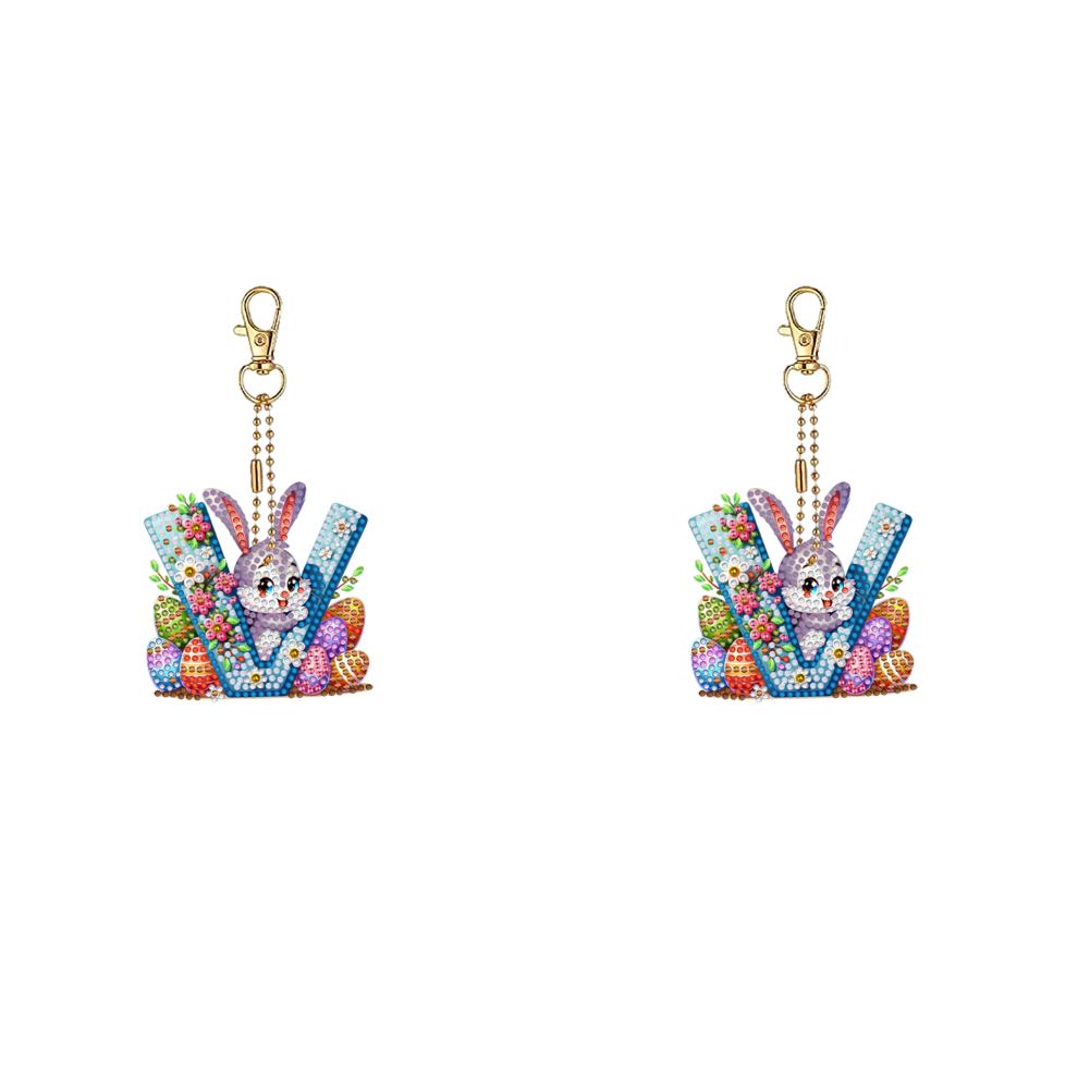 (US Local)PET Double Sided Special Shaped Easter Alphabet DIY Diamond Painting Keychain