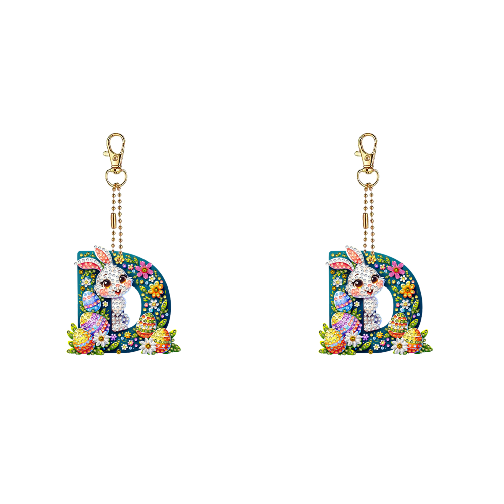(US Local)PET Double Sided Special Shaped Easter Alphabet DIY Diamond Painting Keychain