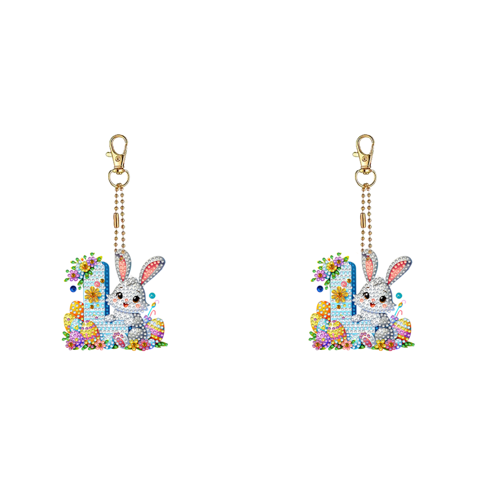 (US Local)PET Double Sided Special Shaped Easter Alphabet DIY Diamond Painting Keychain