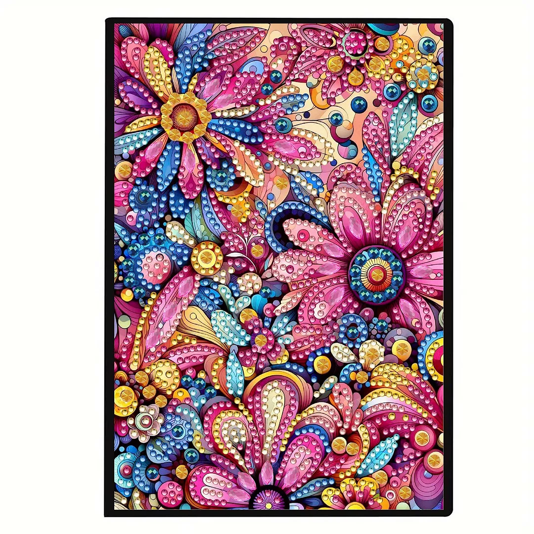 Pink Flowers 5D DIY Diamond Art Painting Notebook Kit 50 Pages A5 Rhinestone Art Painting Notebook Kit for Adults Beginners Holiday Birthday Gift
