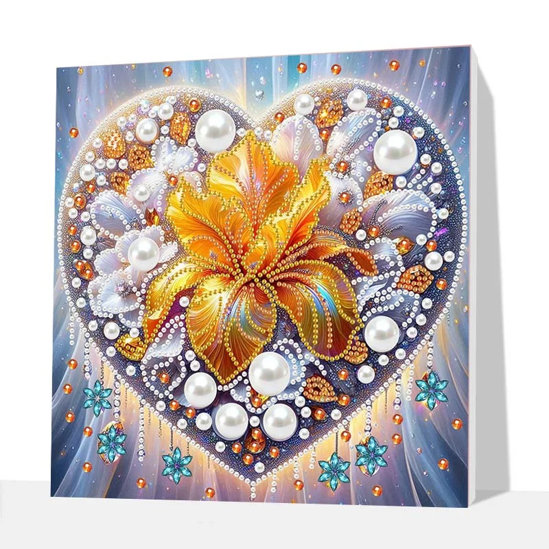 (Pre-Framed)Flower Heart-Special Shape Diamond Painting Kit(25x25cm)