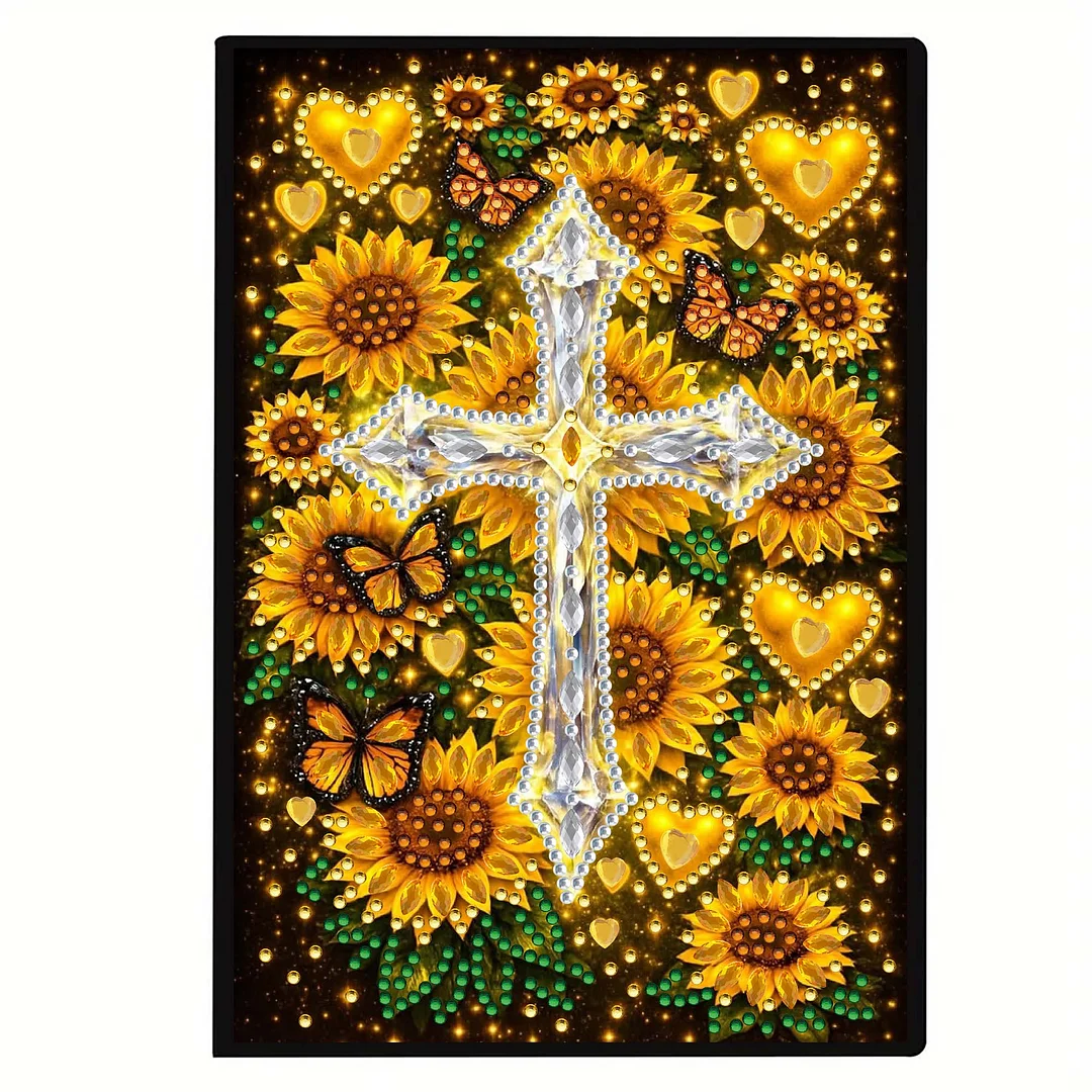 Sunflower Cross 5D DIY Diamond Art Painting Notebook Kit 50 Pages A5 Rhinestone Art Painting Notebook Kit for Adults Beginners Holiday Birthday Gift