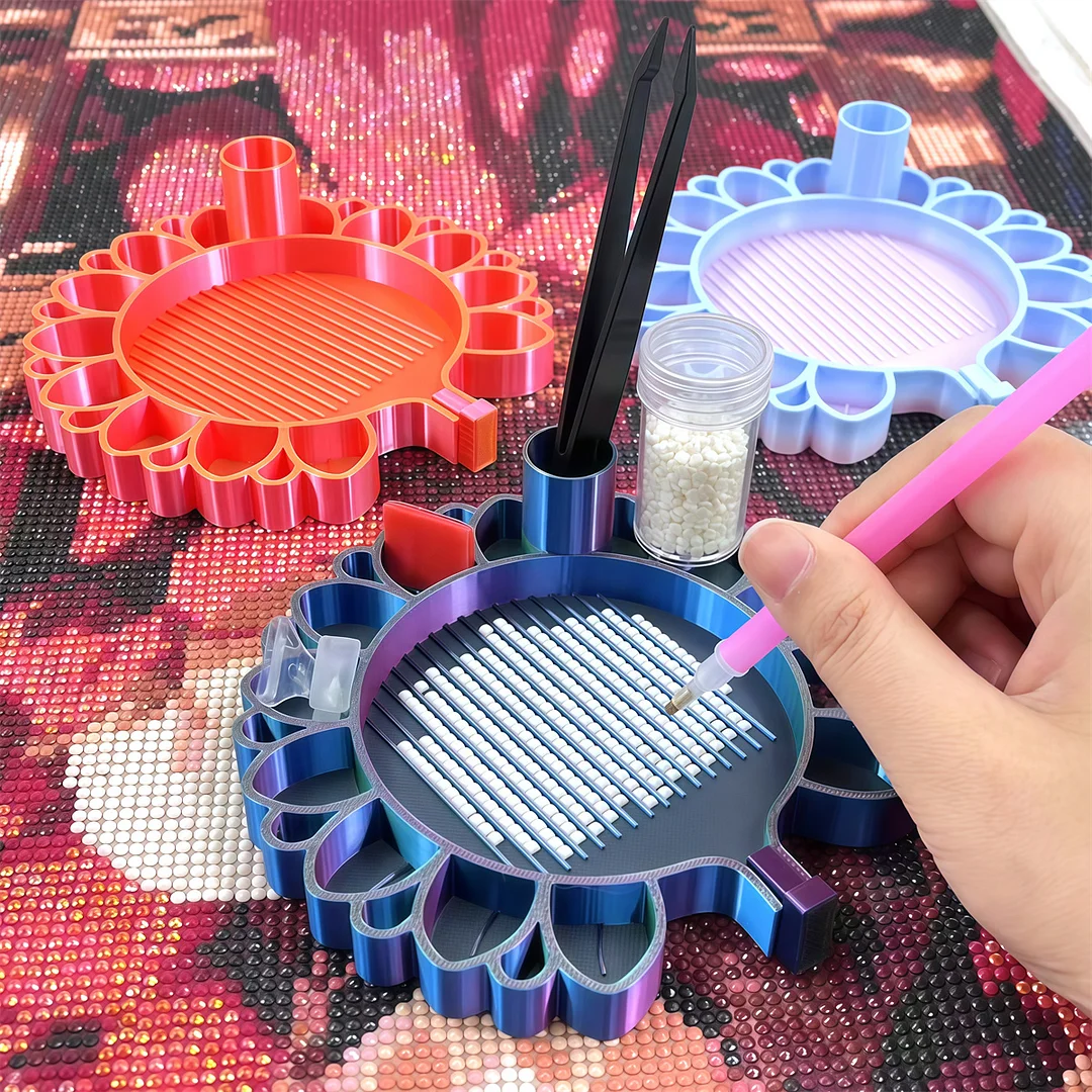 Sunflower Diamond Painting Dotting Tray with Storage , Grid System Diamond Art Accessories