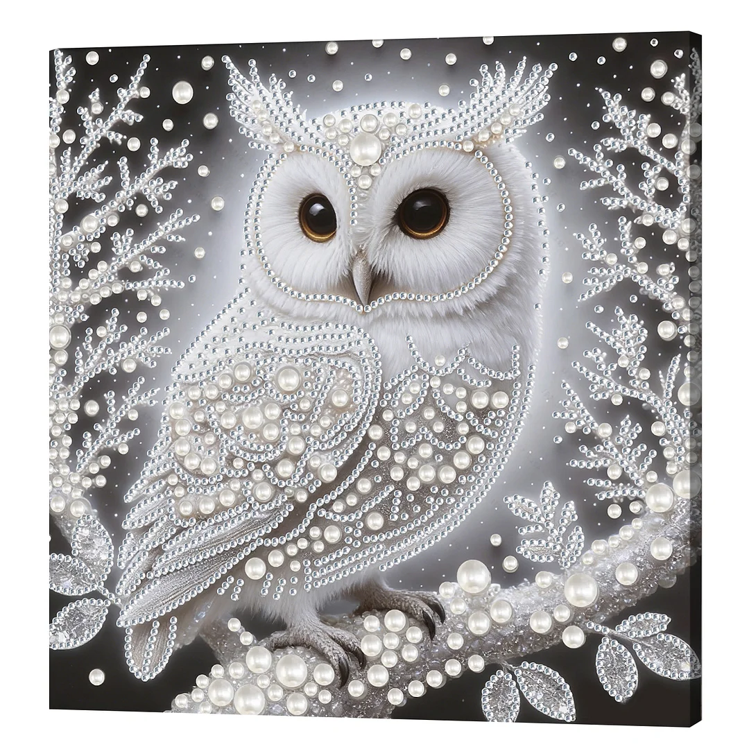 (Pre-Framed)White Owl-Special Shape Diamond Painting Kit(25x25cm)